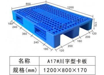 名称:A17川字型塑料托盘 规格:1200×800×170 动载:1500kg 静载:5000...详情